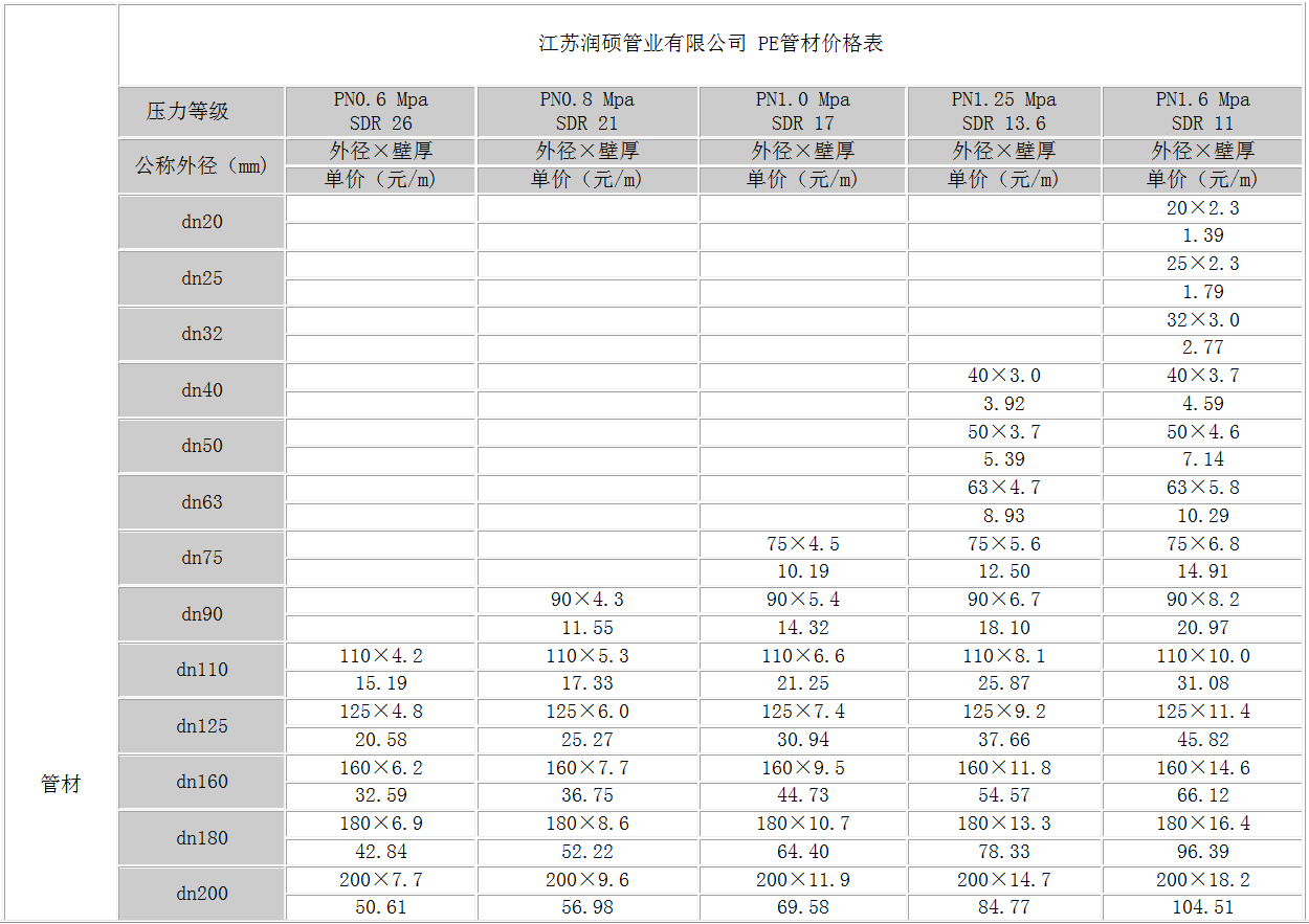 江蘇潤碩2018年pe管報價