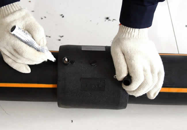 4、將管材焊接端插入接口至管件的限住肩或主管材上的標記深度,管件必須在無應力條件下與管材安裝在一起.